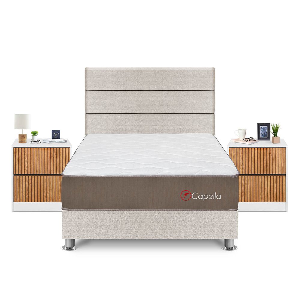 Dormitorio Capella 2 Plazas + Velador Roma + Respaldo Beige