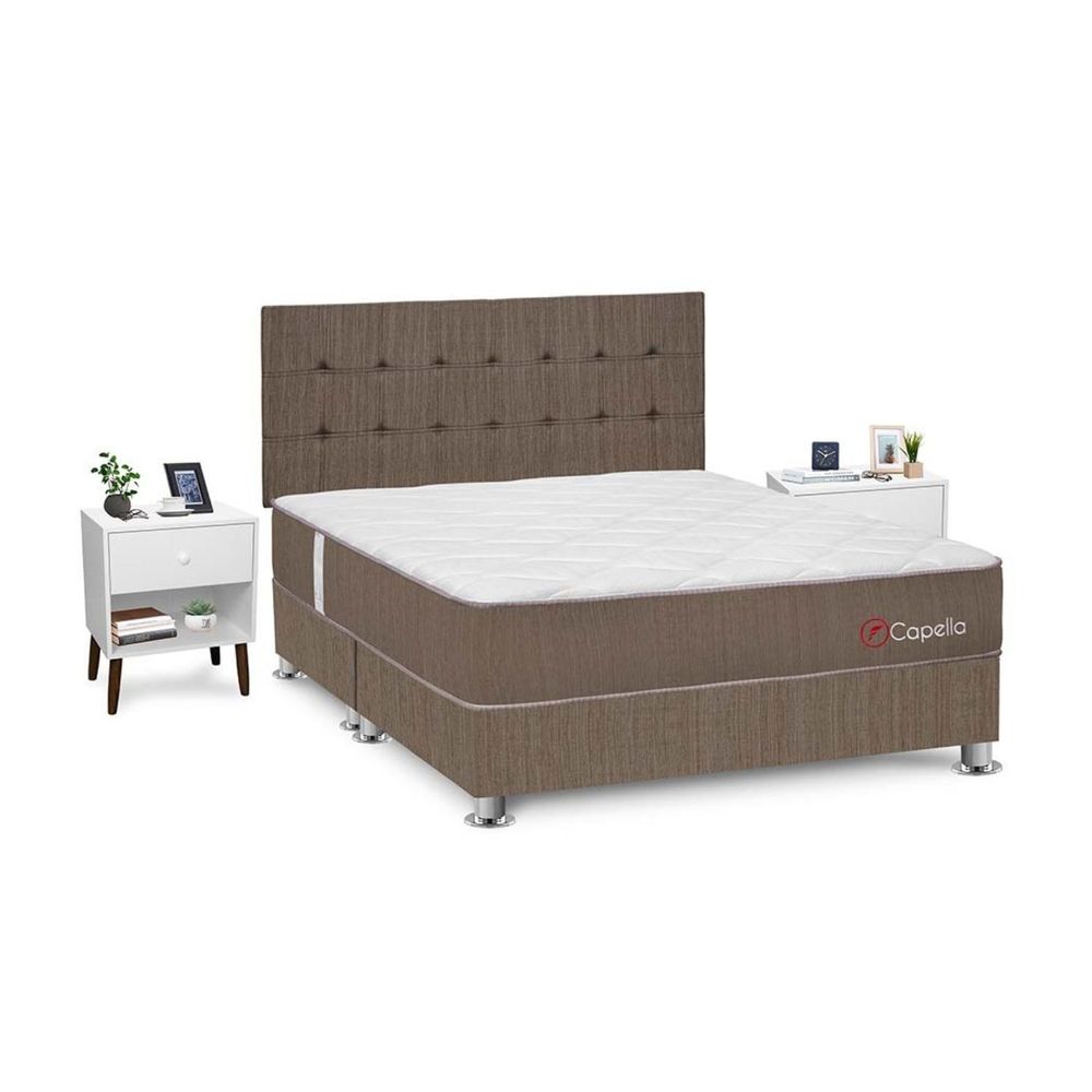 Dormitorio Capella Queen + Velador Fer Blanco Forli