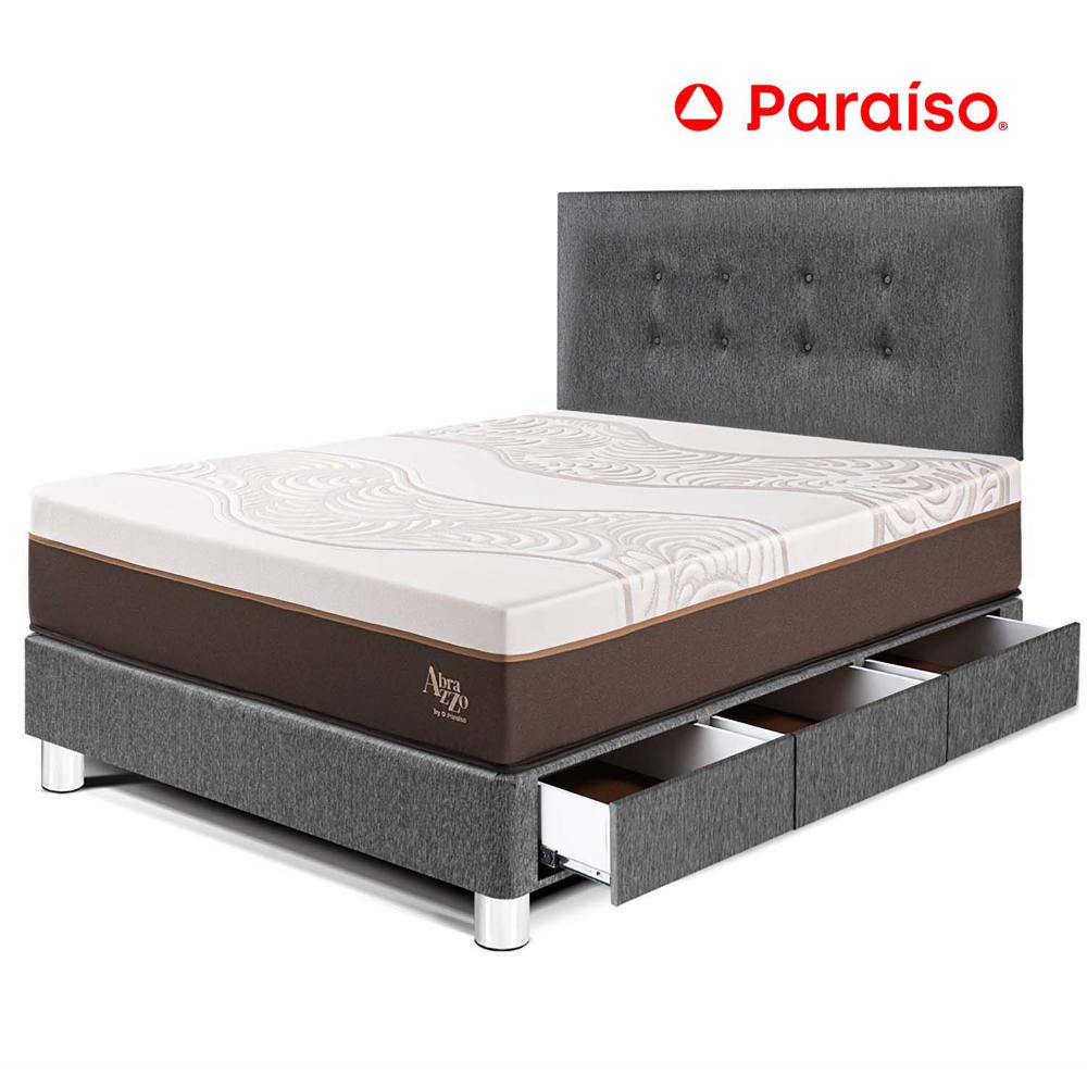 | Beneficios | Abrazzo, la exclusiva tecnología MEMORY FOAM testeada en el laboratorio Paraíso, te ofrece un descanso de alta calidad que ayuda a reducir minuciosamente cada punto de presión para favorecer tu descanso, ofreciendote una sensación de Abrazzo placentera. La tapa con delicada tela tejido de punto con fibras de viscosa te ofrece una sensación única de suavidad al tacto. |
