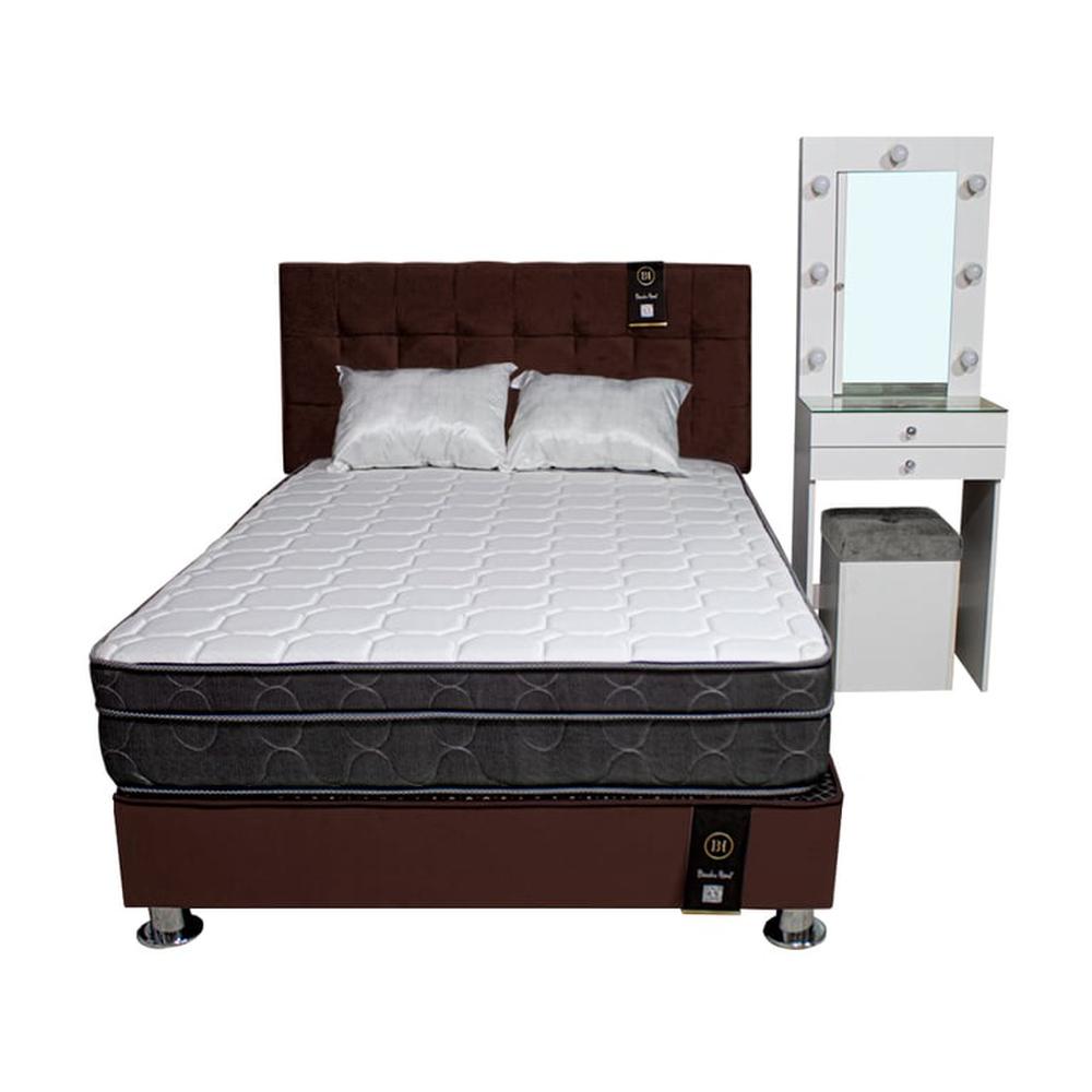 Dormitorio Coquette 2 Plz + Cabecera + Tocador + Puff - Chocolate