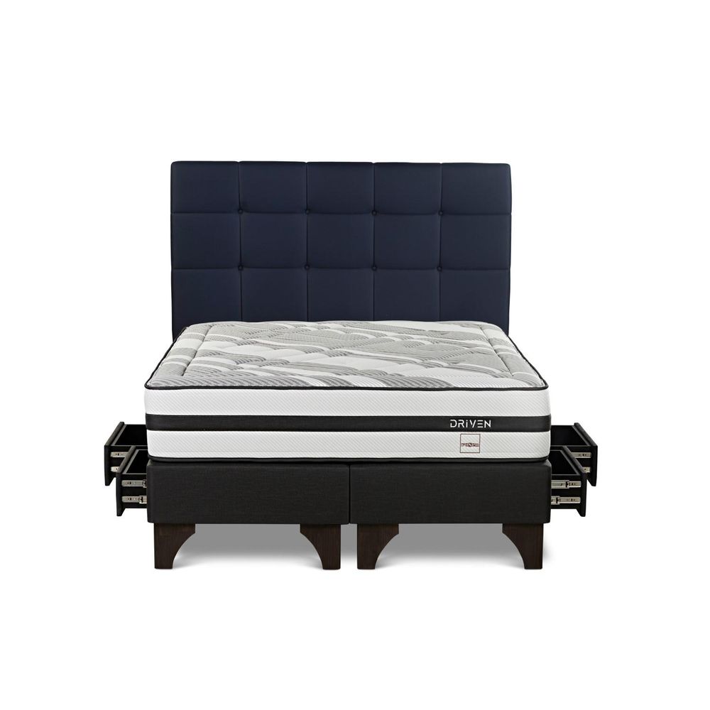 | Beneficios | Obtén espacio extra y descansa en una cama creada bajo los principios de ergonomía. Driven Rosen presenta una estructura de resortes Pocket zonificados (cada uno dentro de su propia funda) ofrece una respuesta diferenciada a las zonas del cuerpo. Así, cabeza, cuello, espalda, caderas y piernas descansarán adecuadamente según su peso y contorno. Además, evita que los movimientos producidos en un lado del colchón se transmitan y/o sientan al otro costado. Su topper de ecolatex con High Resiliencia (alta resiliencia); rápida capacidad de retorno en su contacto con el cuerpo, otorga gran elasticidad, y en combinación con la tecnología Pocket permite un aumento en la firmeza del colchón para brindar una correcta y óptima adaptación al peso y forma del cuerpo. El sistema Airflow facilita el flujo y circulación natural del aire al interior del colchón asegurando una temperatura balanceada y grata al cuerpo para un descanso más pleno. |