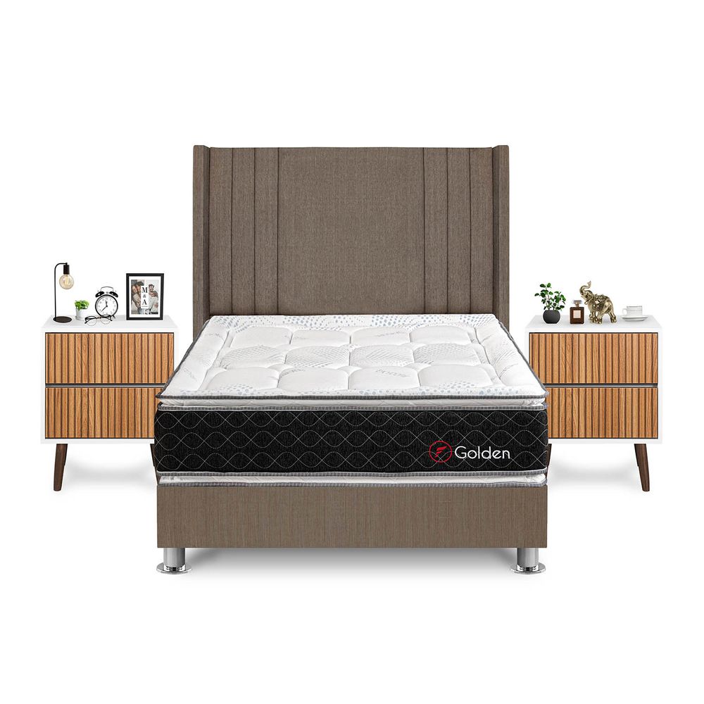 Dormitorio Golden 2 Plazas + Velador Milan + Respaldo Marron