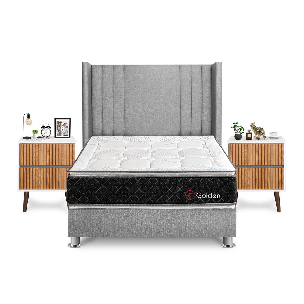 Dormitorio Golden 2 Plazas + Velador Milan + Respaldo Plata