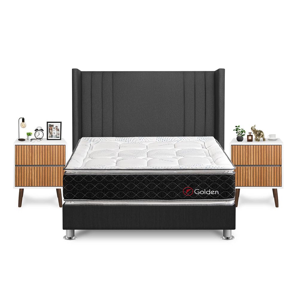 Dormitorio Golden Queen + Velador Milan + Respaldo Gris