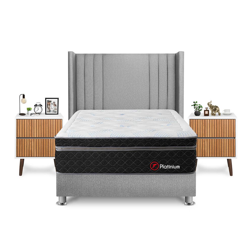 Dormitorio Platinium 2 Plazas + Velador Milan + Respaldo Plata
