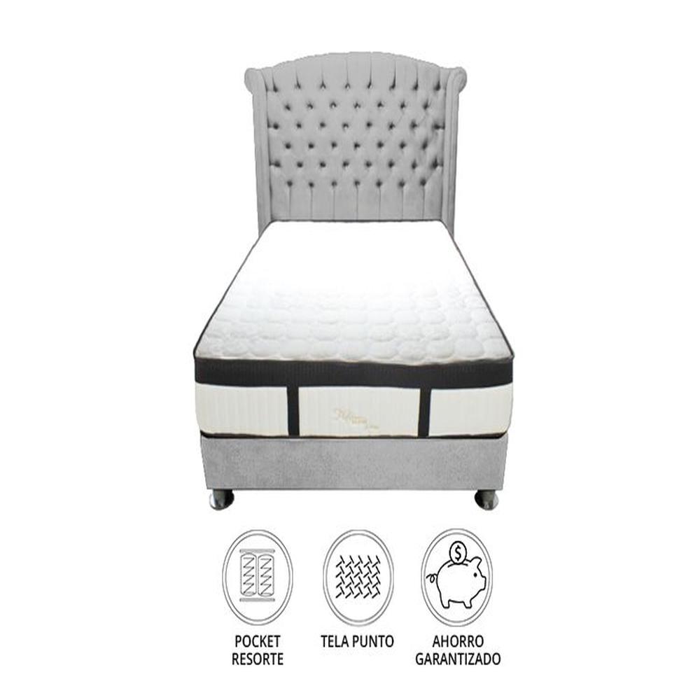 Dormitorio Platinium Con Almohada y Cojin Queen - Gris Claro