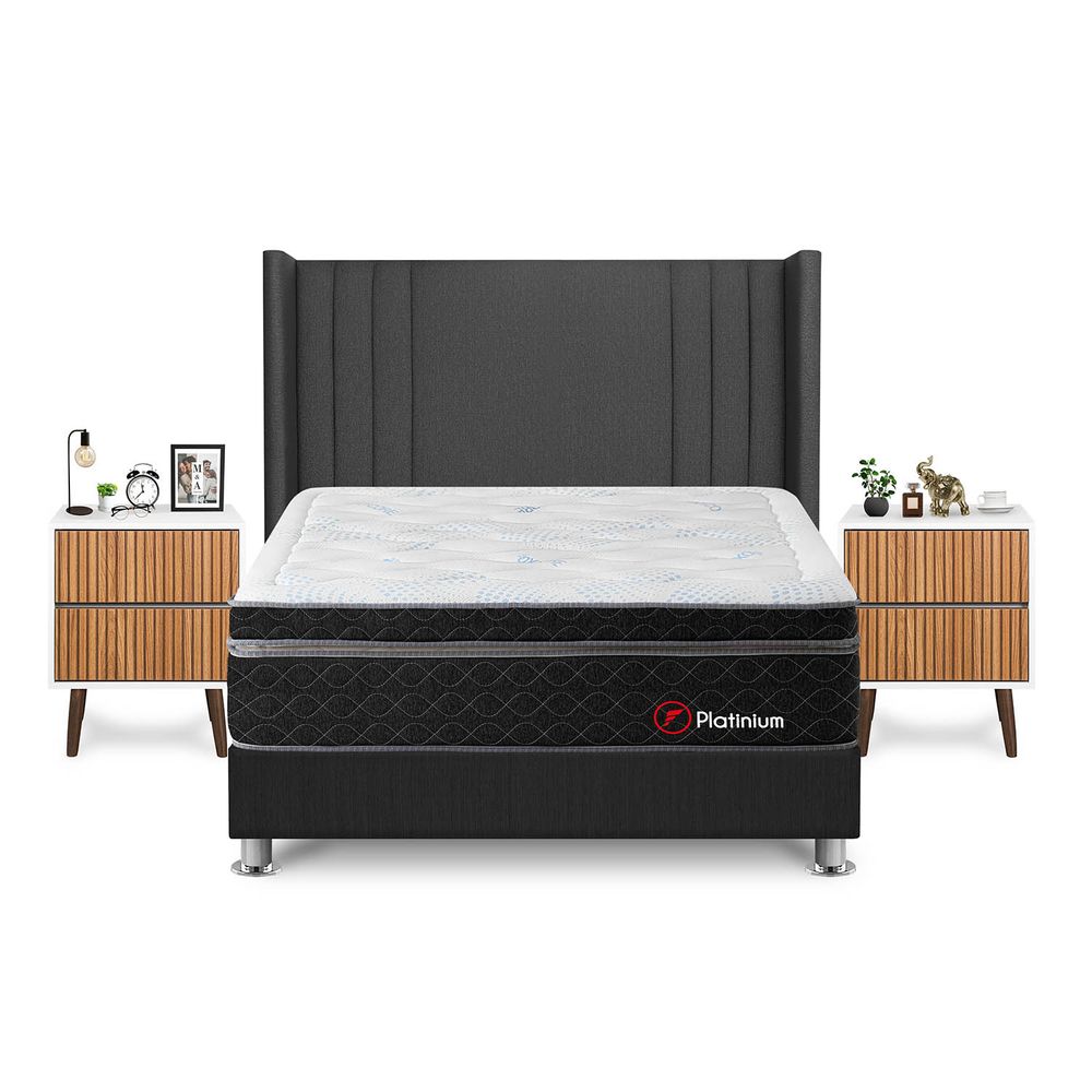 Dormitorio Platinium King + Velador Milan + Respaldo Gris