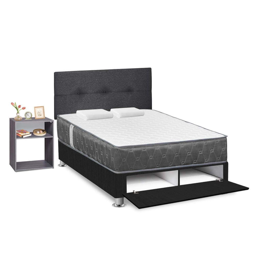 Dormitorio Sabanera Acqua 2 Plazas + Velador Turin Plomo + Respaldo