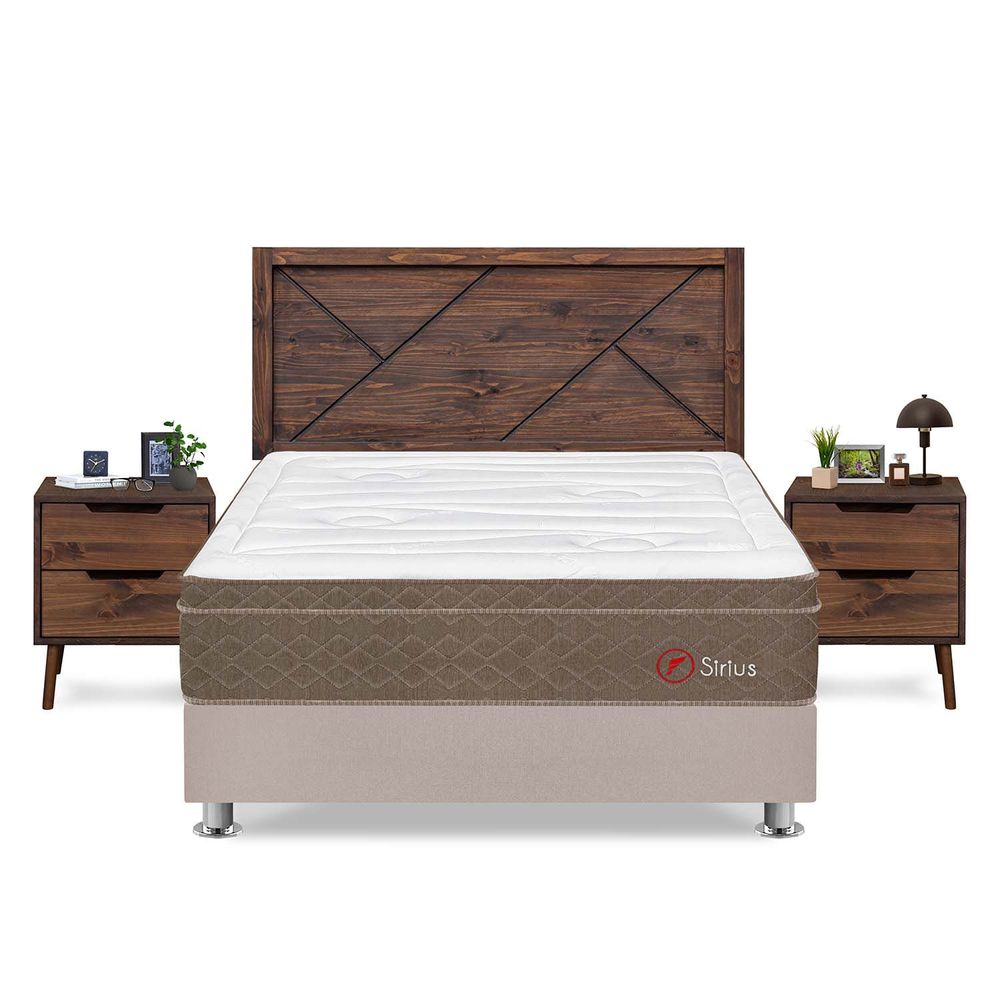 Dormitorio Sirius Queen Beige + Velador Catania + Cabecera Florencia Nogal
