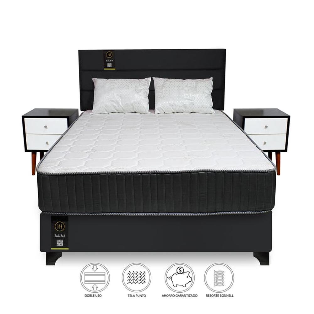 Dormitorio Tuzla 2 Plz + Cabecera + Colchón Dual + 2 Veladores + 2 Almohadas - Negro