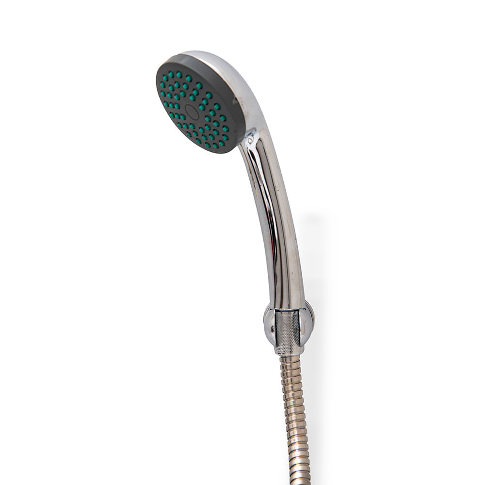 | Características | Salida de ducha teléfono hecho de manguera de acero flexible en acabado cromado con cuerpo interno de nylon trenzado, cabezal o mango de ABS con un tipo de chorro, producto anatómico ideal para el cuidado e higiene personal. |