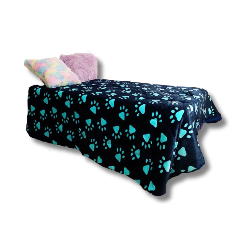 Edredon 2 Plazas Piel de Angel Color Negro Estampado Perritos