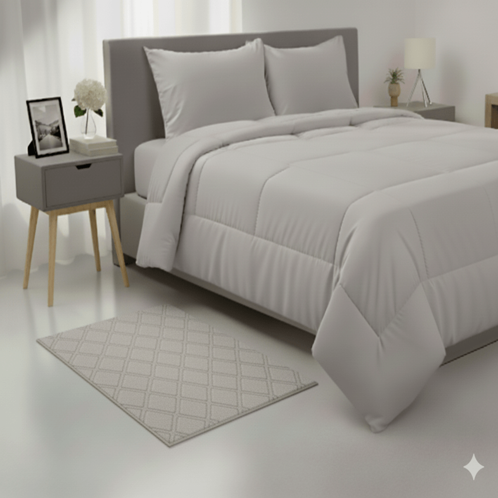 Edredón Gris algodón 220 hilos con Funda Sham 2 Plz