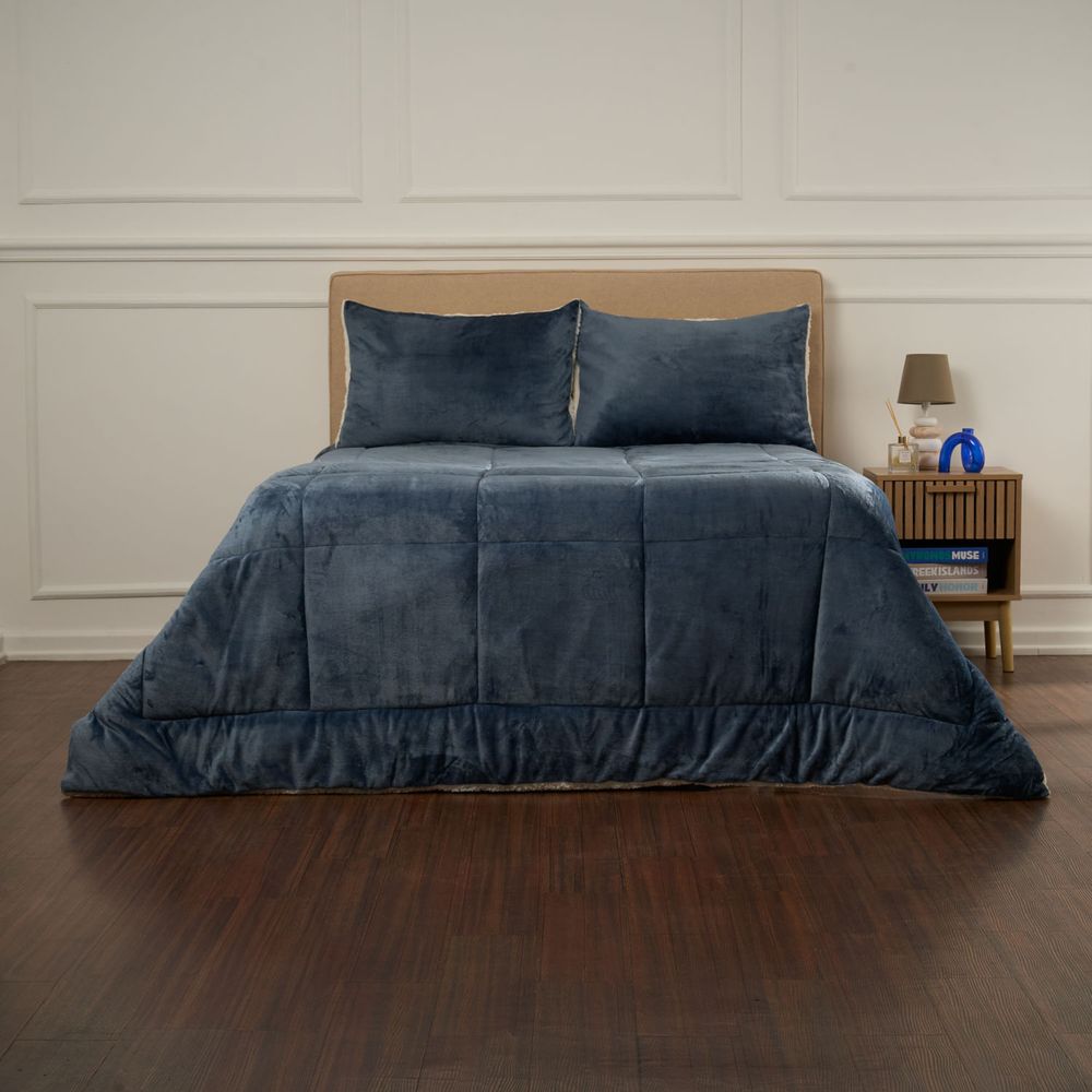 Edredon Pv26 Flannel Sherpa V1/V4 Azul 1.5 Plazas.