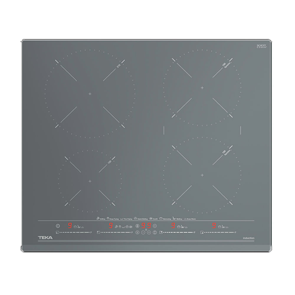 | Características | Cuenta con 4 platos de inducción. Touch Control Slider con sensores acústicos y bloqueo de seguridad. Cristal vitrocerámico, biselado. Función Synchro: cocinado simultáneo de las dos zonas de diámetro 180 mm. Función Power Plus. Función Stop & Go. Función Mute. Programador del tiempo de cocción hasta 99 min con avisador acústico (posibilidad de programar todas las placas a la vez). Detector de recipientes. Funciones especiales de cocinado iCooking: iQuick Boiling, Simmering, Melting y mantenimiento de calor sistema de optimización del recipiente. Sistema de instalación Fast-Click. Indicadores de calor residual. |