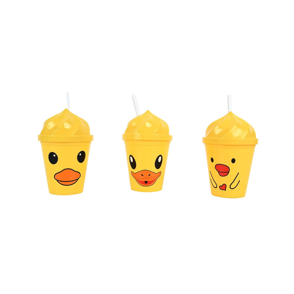 ESCOLAR - VASO DISEÑO PATITO CON SORBETE DE 350ML - 03 COLORES