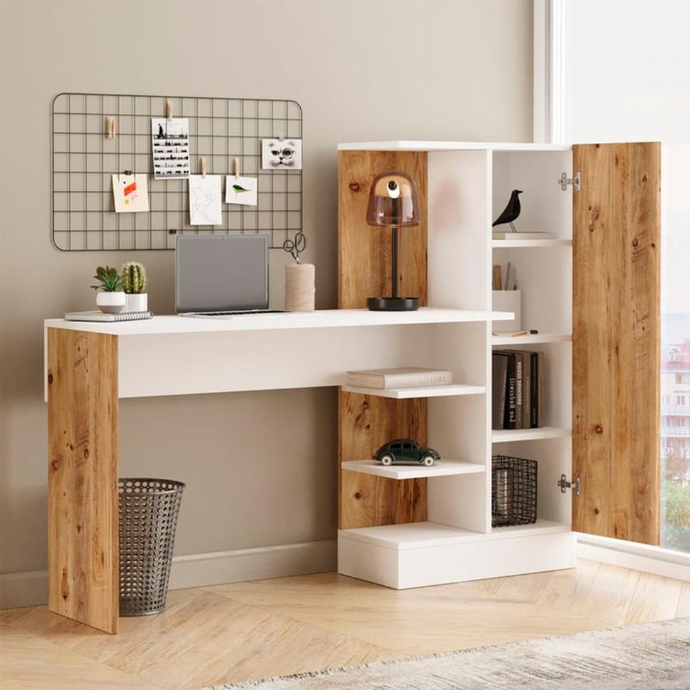 Escritorio Con Cajones Y Repisa Tarawa - Blanco Y Damasco