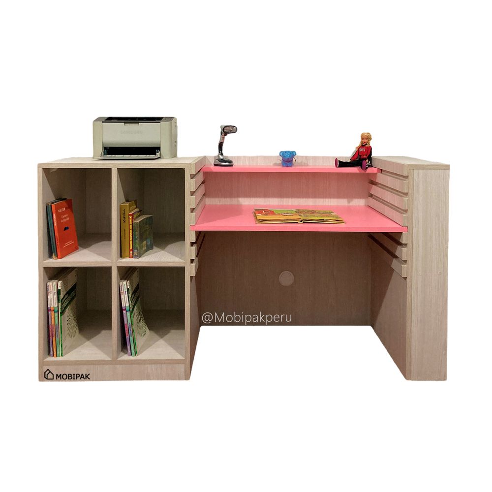 Escritorio Evolutivo Regulable 4 Cubos Mobipak Niebla Rosado 150 cm