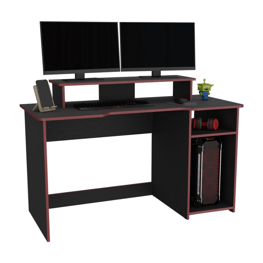Escritorio Gamer con 2 monitores Huni Wengue/Rojo