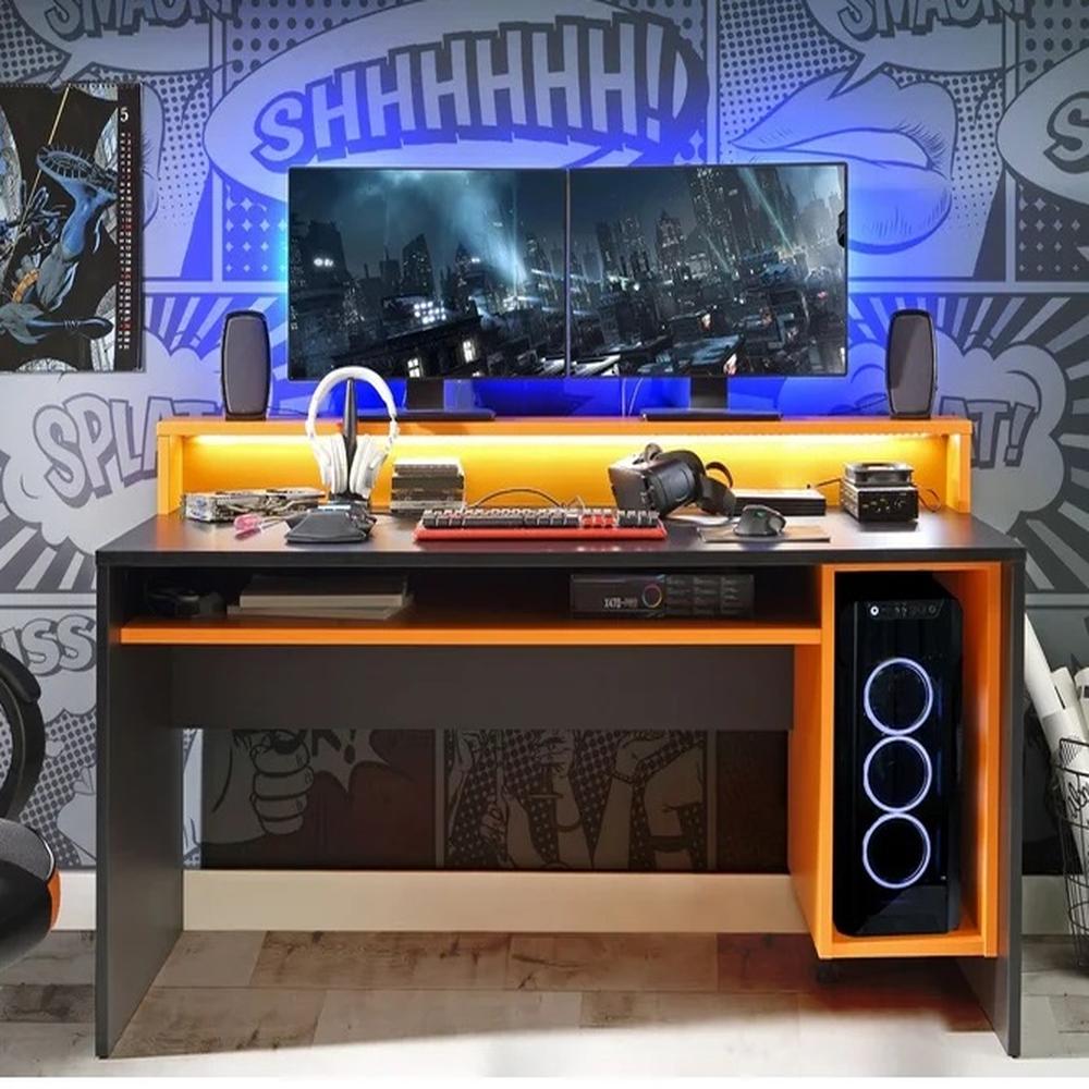 Escritorio Gamer Usopp Moderno - Negro y Naranja