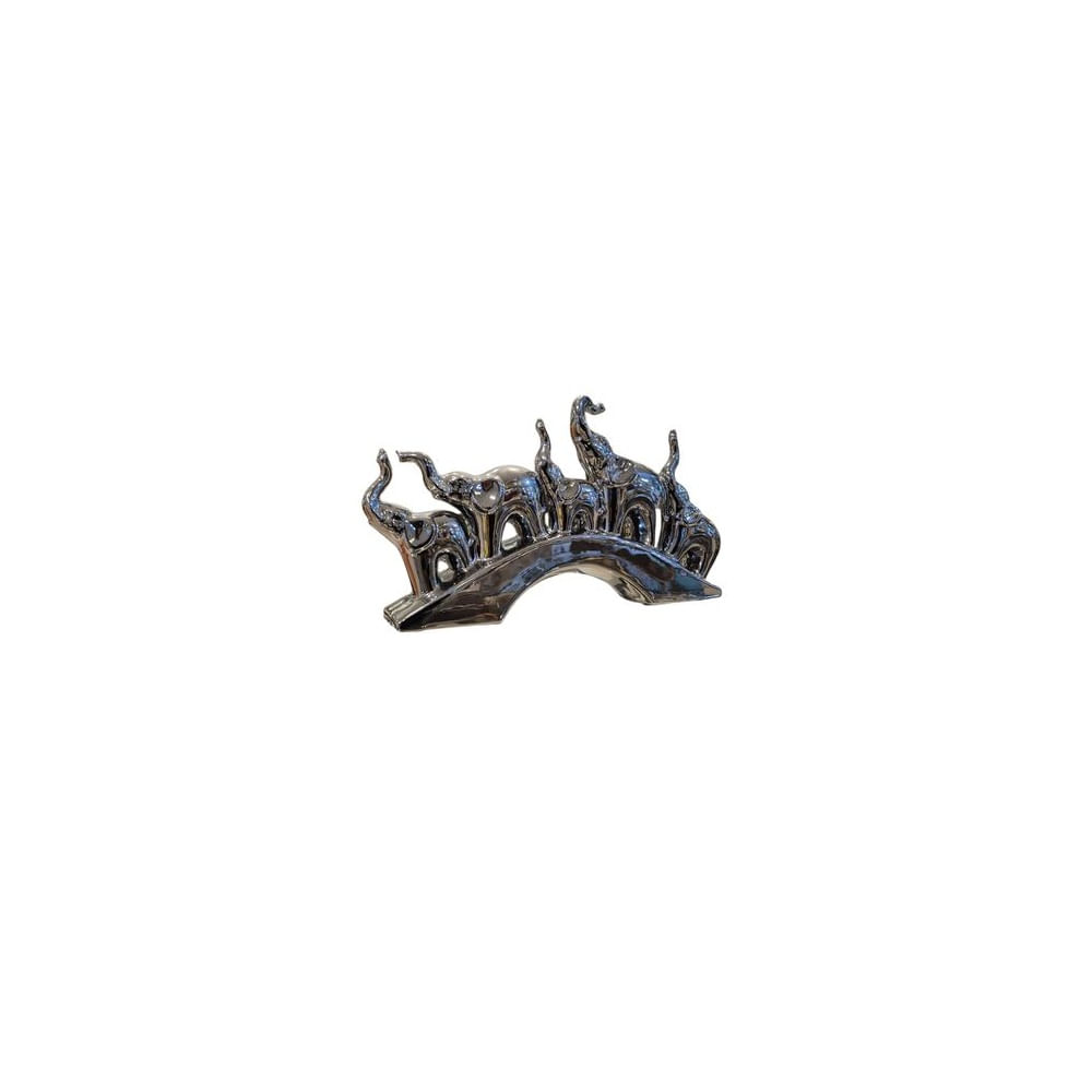 Escultura Decorativa Elefantes Plateados en Arco - Adorno Elegante para Sala Regalo Ideal Plateado