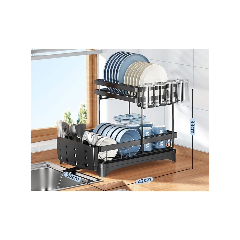 Escurridor de Platos de dos niveles con Posavasos y Drenanaje movible
