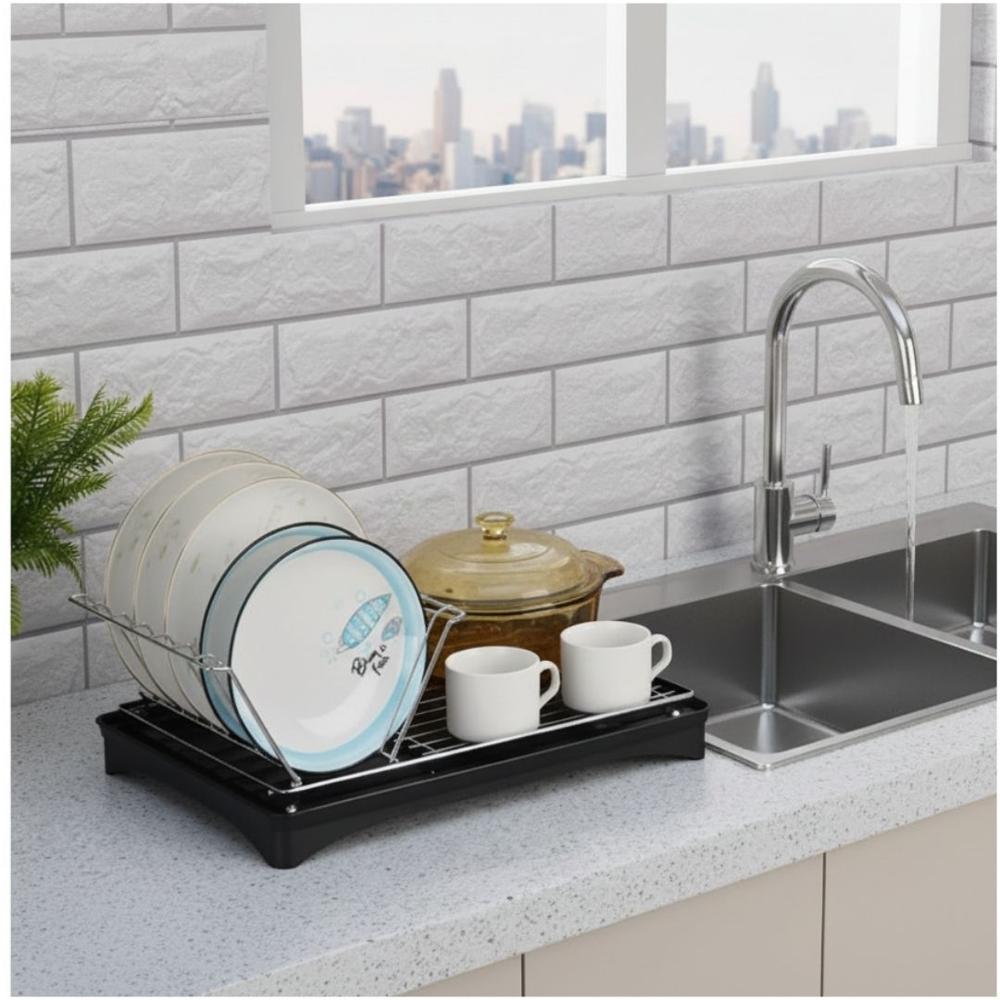 Escurridor de Platos Vasos Acero al Carbono con Sistema de Drenaje 16.5x42x30cm