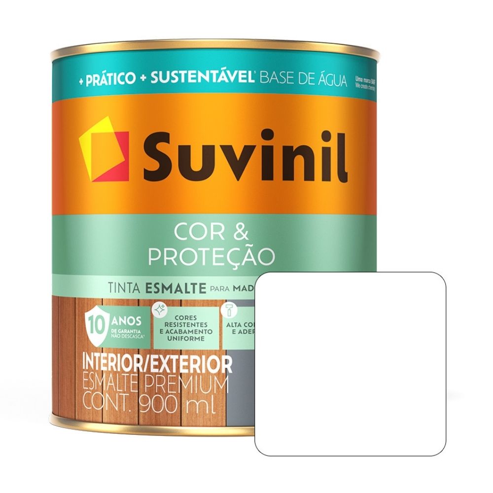 | Características | El Suvinil Esmalte Color Protección (Base Agua) es un esmalte premium de secado rápido y sin olor, con garantía de 10 años, acción fungicida contra moho y algas, disponible en más de 2,000 colores y apto para superficies internas y externas de madera, metales ferrosos y no ferrosos, galvanizados, aluminio y PVC |