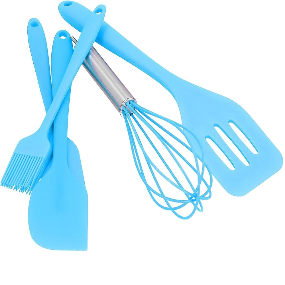 Espátula Ranurada de Silicona Batidor y Cepillo para Untar Celeste