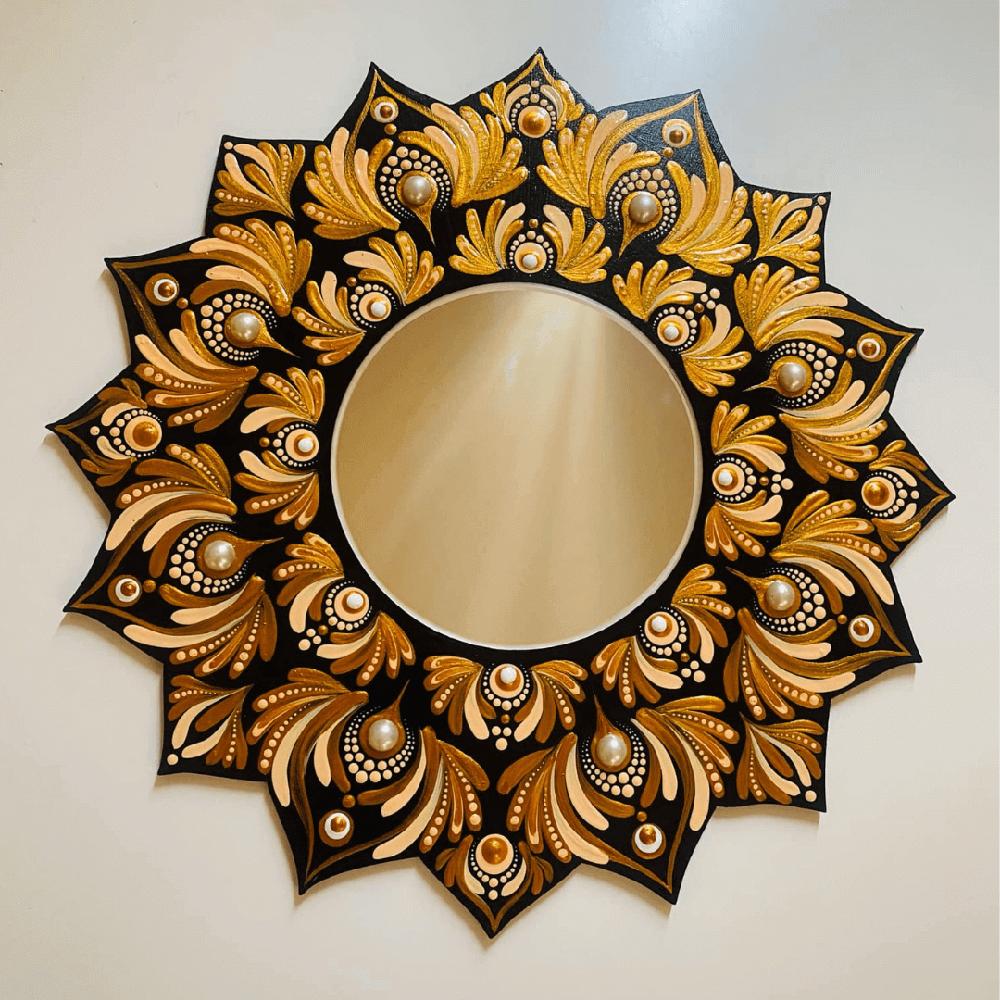 Espejo decorativo de pared Reya Mándala Flor Dorada 35 cm