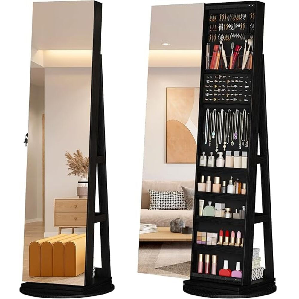 Espejo Giratorio con Organizador de Joyas Sakia Negro TU MESITA