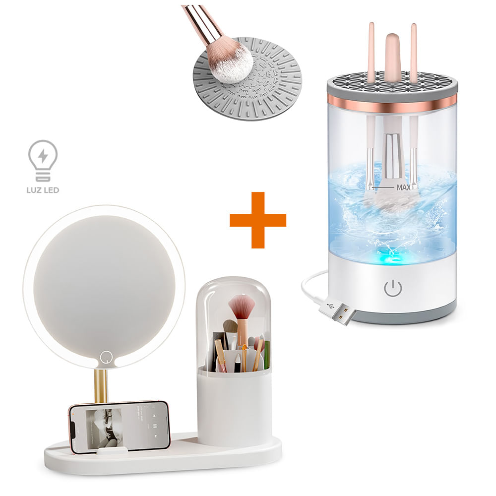 Espejo LED con Organizador BL Y14 Y Limpiador de Brochas BL S52