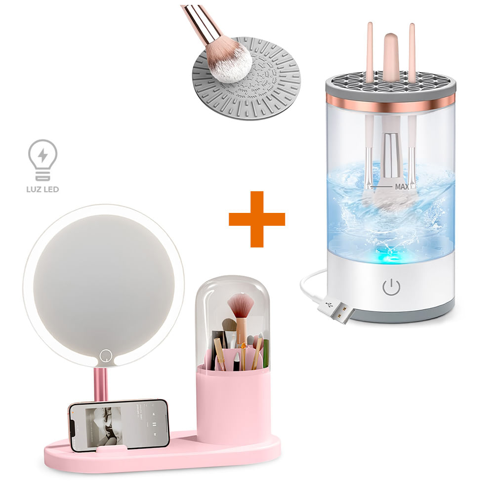 Espejo LED con Organizador RS Y14 Y Limpiador de Brochas BL S52