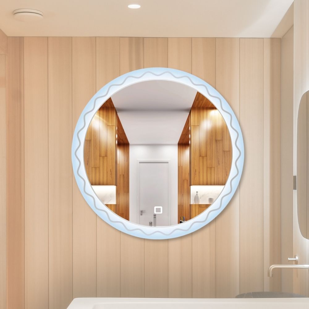 Espejo Circular LED Zaga Modelo Cris de Vidrio Transparente de 59x59 cm