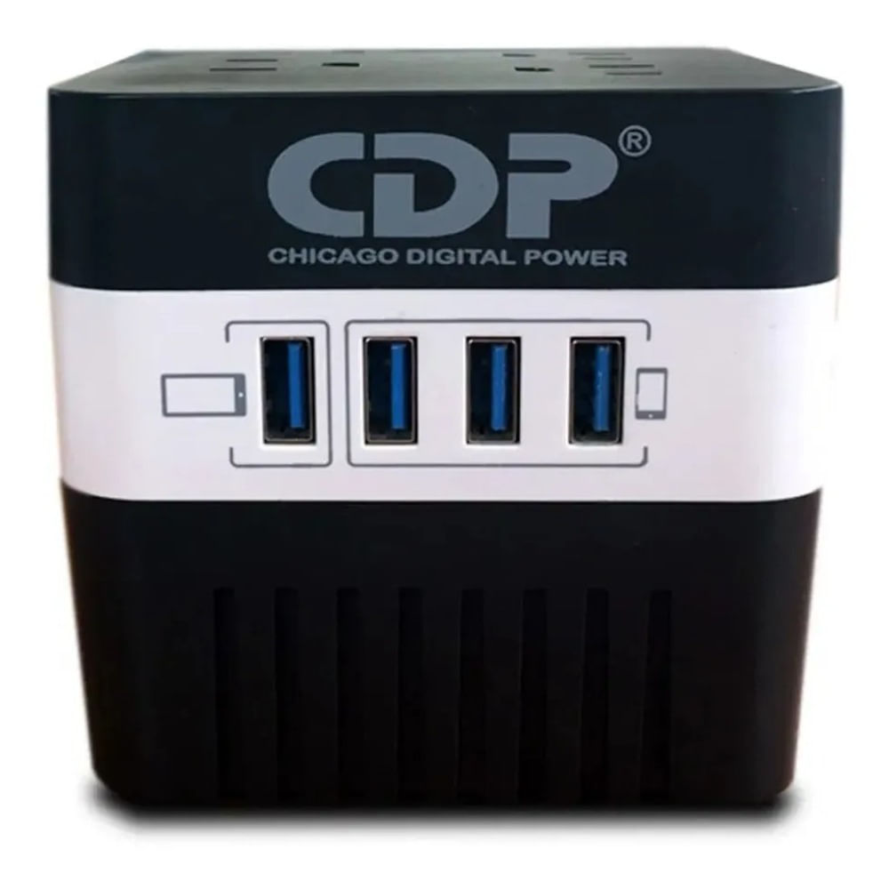 Estabilizador Cdp Ru avr6041 600va 300w 4 Salidas 4 Usb Bn Negro