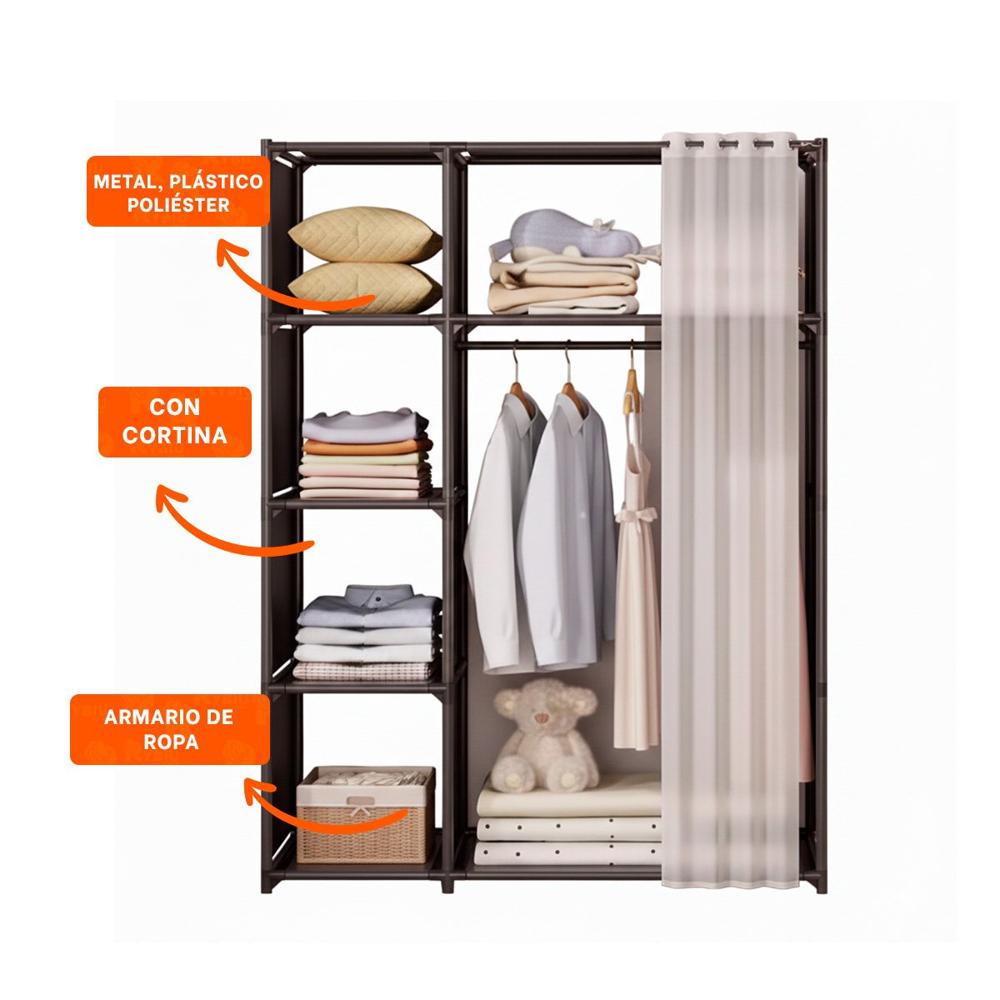 Estante Organizador de Ropa con Cortina Negro Abierto para Dormitorios Y+Ligas Regalo