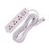 | Características | Aislamiento PVC de color blanco con enchufe plano+tierra incorporado. Cuenta con mini interruptor iluminado de encendido y apagado además 1 botón de reseteo, para conexiones interiores de electrodomésticos usados en el hogar y la oficina, retardante al fuego y cuenta con salida de 3 tomacorrientes universales. |