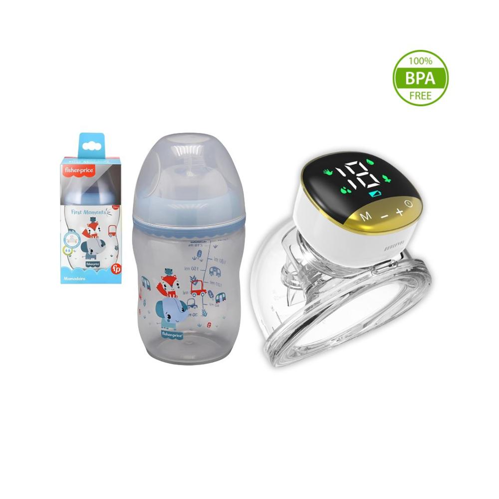 Extractor de Leche Portátil Manos Libres y Biberón Azul 270Ml