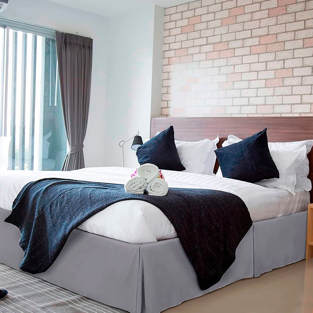 Faldon de Tarima Nube Hogar Drill con Pinzas King 198cm X 203cm Gris claro 30cm