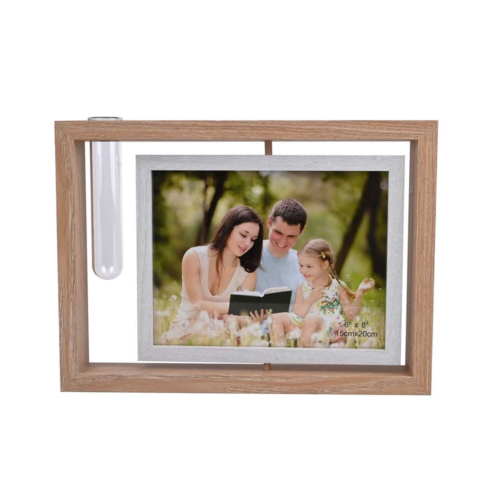 FELIZ DIA MAMA - Portaretrato giratorio con base para flores y marco de madera 35x22cm
