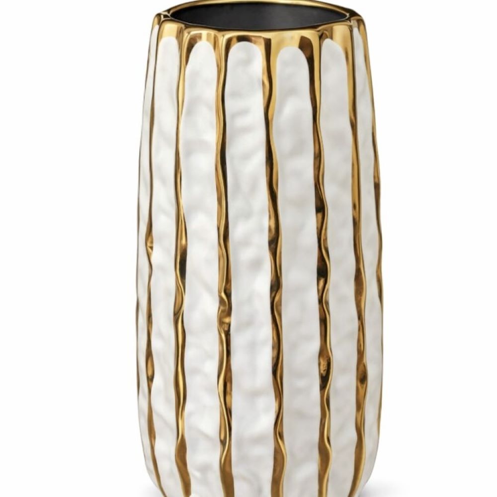 Florero de Céramica Texturizado Blanco con bordes Dorados