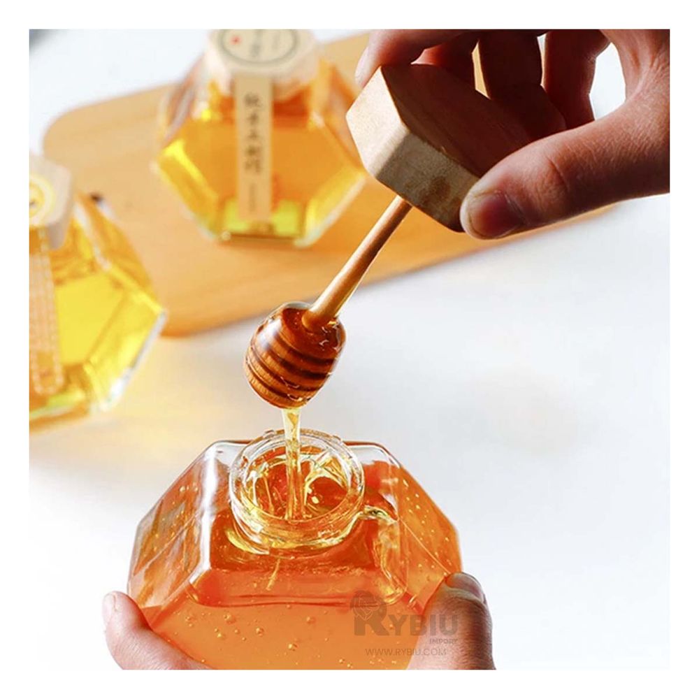 Frasco Hexagonal de 380 ml de Tapa de Madera Transparente