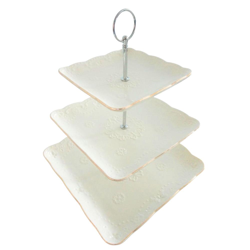 Fuente Porta Bocaditos Cuadrado de 3 Pisos de Loza