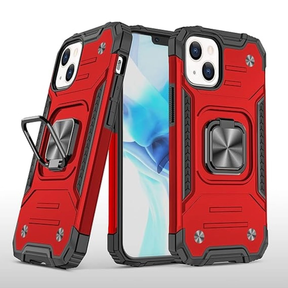 Funda Case para LG Q61 Robot con Aro Rojo Antishock Resistente ante Caídas y Golpes
