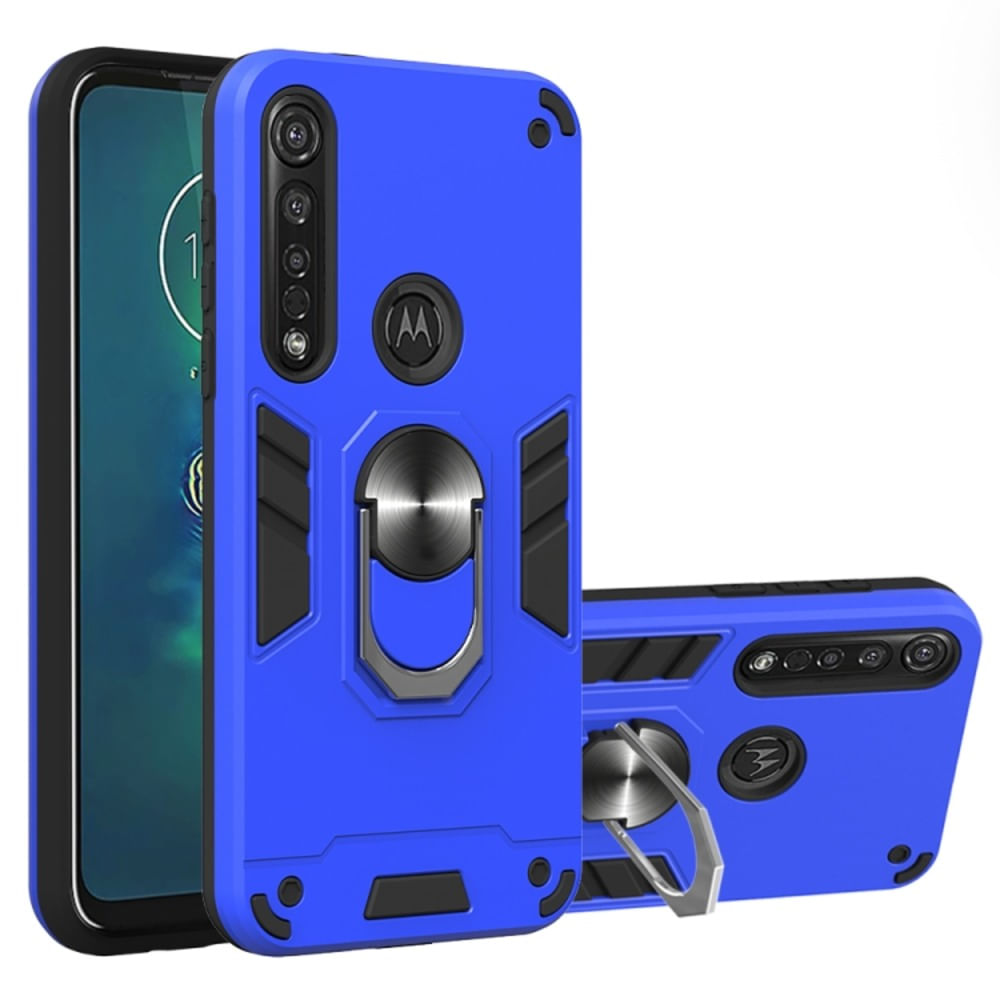 Funda para Motorola Moto G8 Plus con Anillo Metálico Antishock Azul Resistente ante Caídas y Golpes