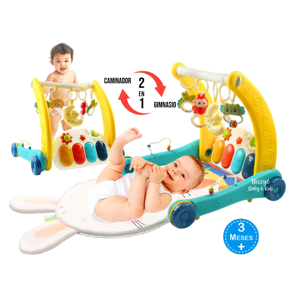 Gimnasio Piano y Caminador 2 en 1 Conejito para Bebés VERDE