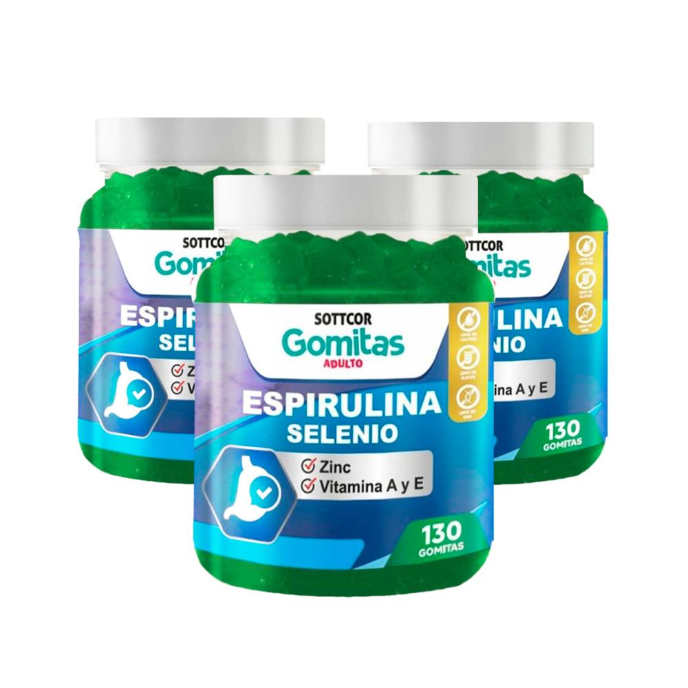 Gomitas con Espirulina Selenio Zinc Vitamina A y E Sottcor 3 Pomos