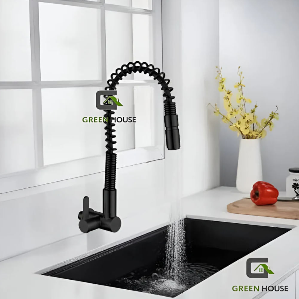 GRIFERIA ACERO COCINA NEGRO RESORTE A LA PARED