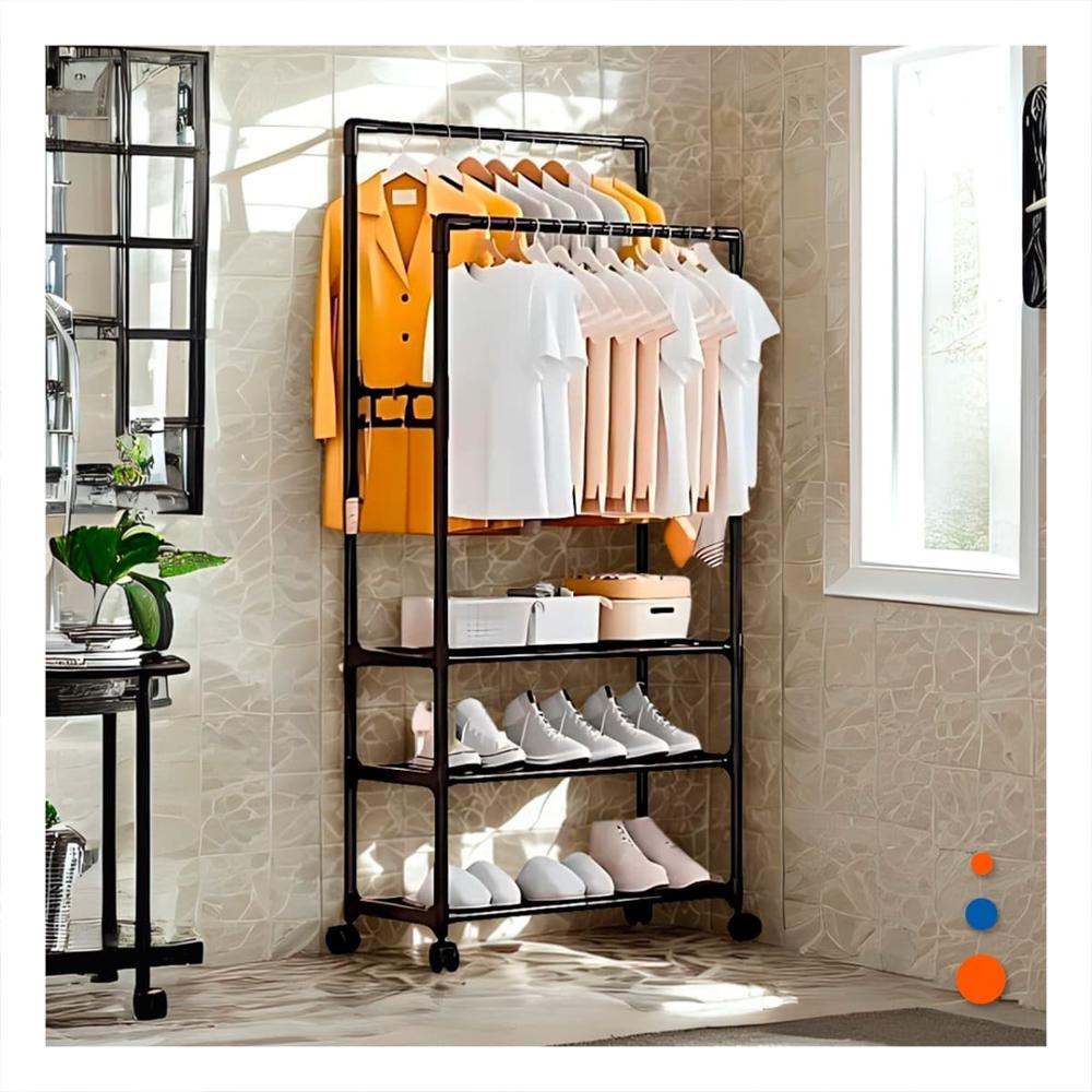 Guardarropa Zapatero 3 Niveles con Perchera Doble Estable y Elegante Negro Y+Regalo Sticker
