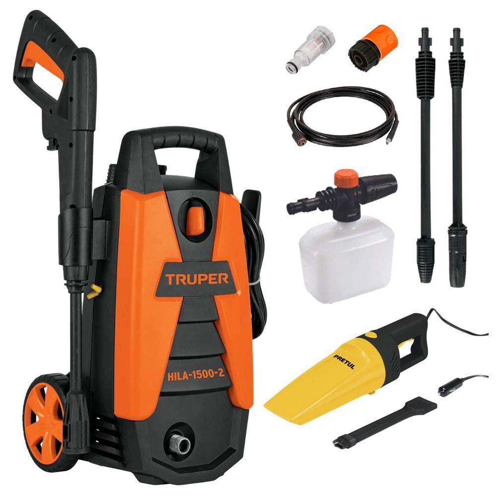 Hidrolavadora 1500 Psi Truper + Aspiradora para Auto 12v 102095-22090